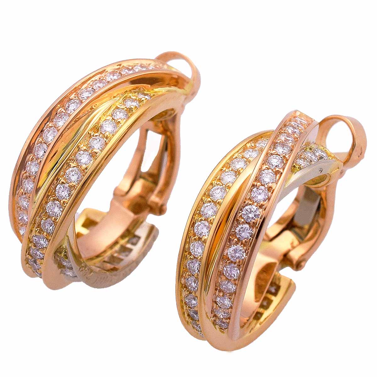 Cartier カルティエ フルダイヤモンド トリニティ スタッドイヤリング 750 K18 YG PG WG イエローゴールド ピンクゴールド ホワイトゴールド【送料無料】【代引き手数料無料】ピアス 女性【中古】21110302