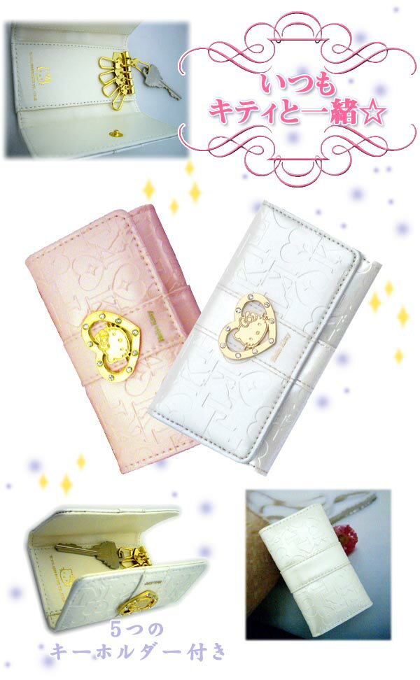 ●ハートのブローチタイプがちょっぴりリッチな雰囲気に! ●『黒、ピンク、白』の3色展開 大人気のハローキティから合成皮革(フェイクレザー)の大人キュートなキーケースが登場★